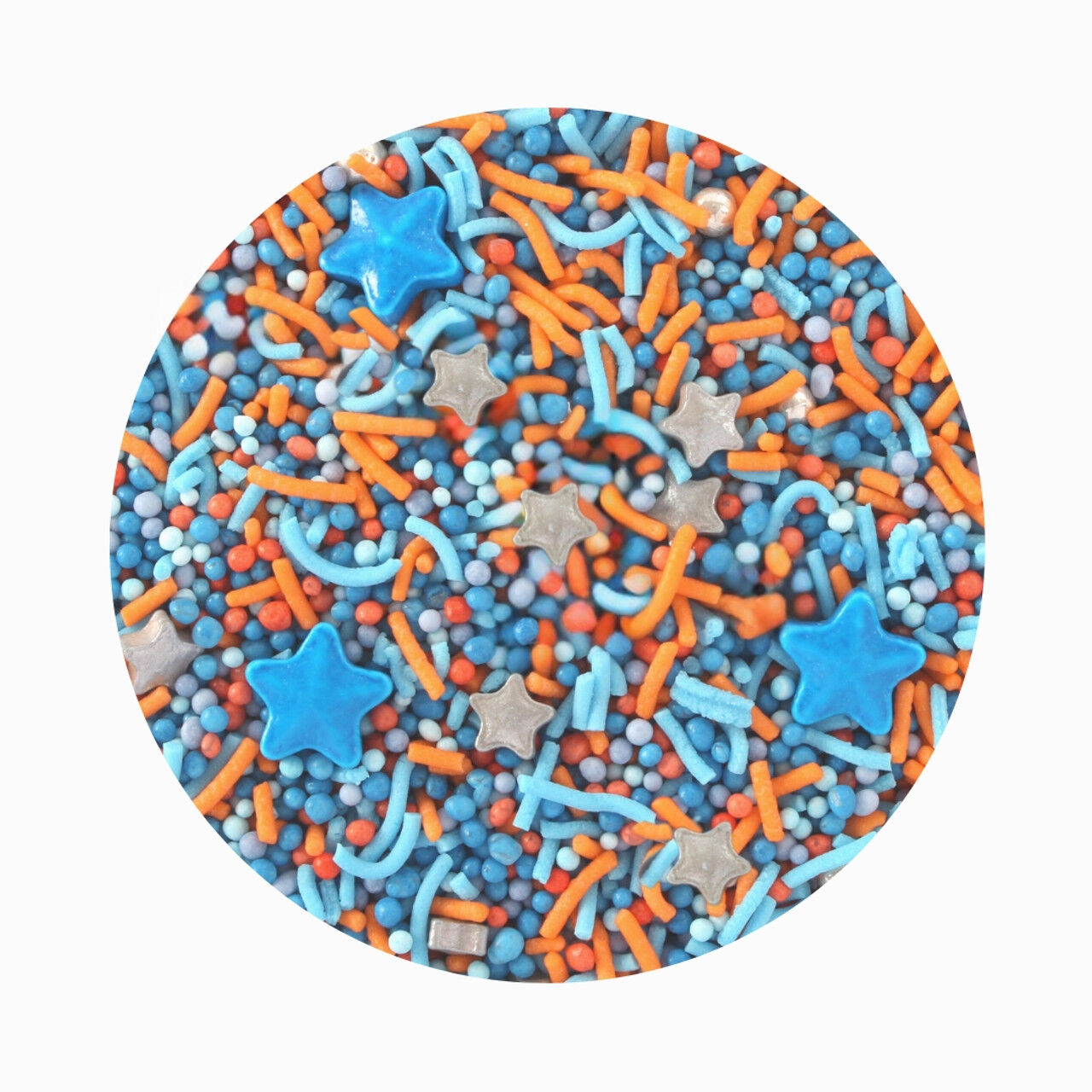 A unique edible blend of Non Pareils in coordinating colours, Silver, Yellow & Blues with a hint of Orange.